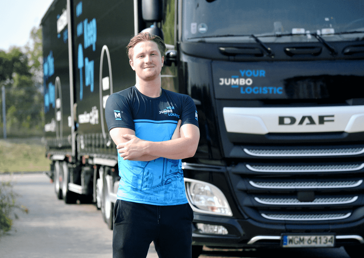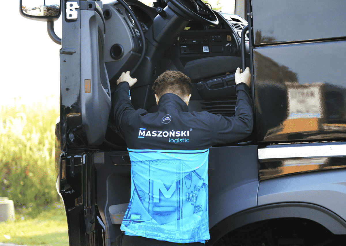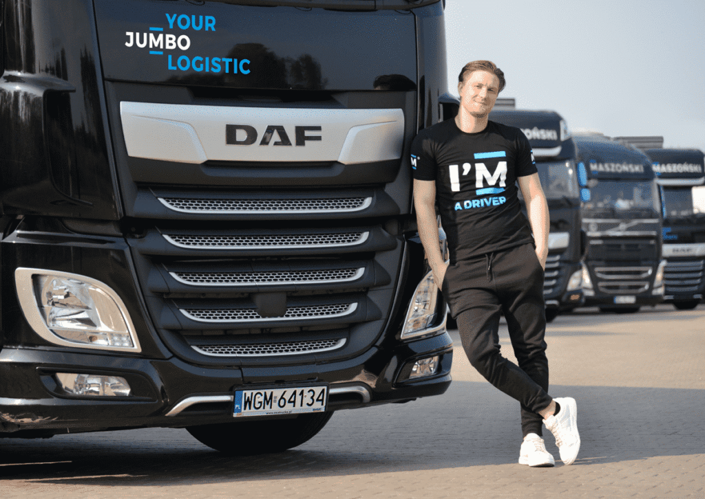 Pozostałe koszulki ozdobione zostały grafiką z naszym autem w roli głównej – to stały element i znak rozpoznawczy odzieży firmowej Maszoński logistic.