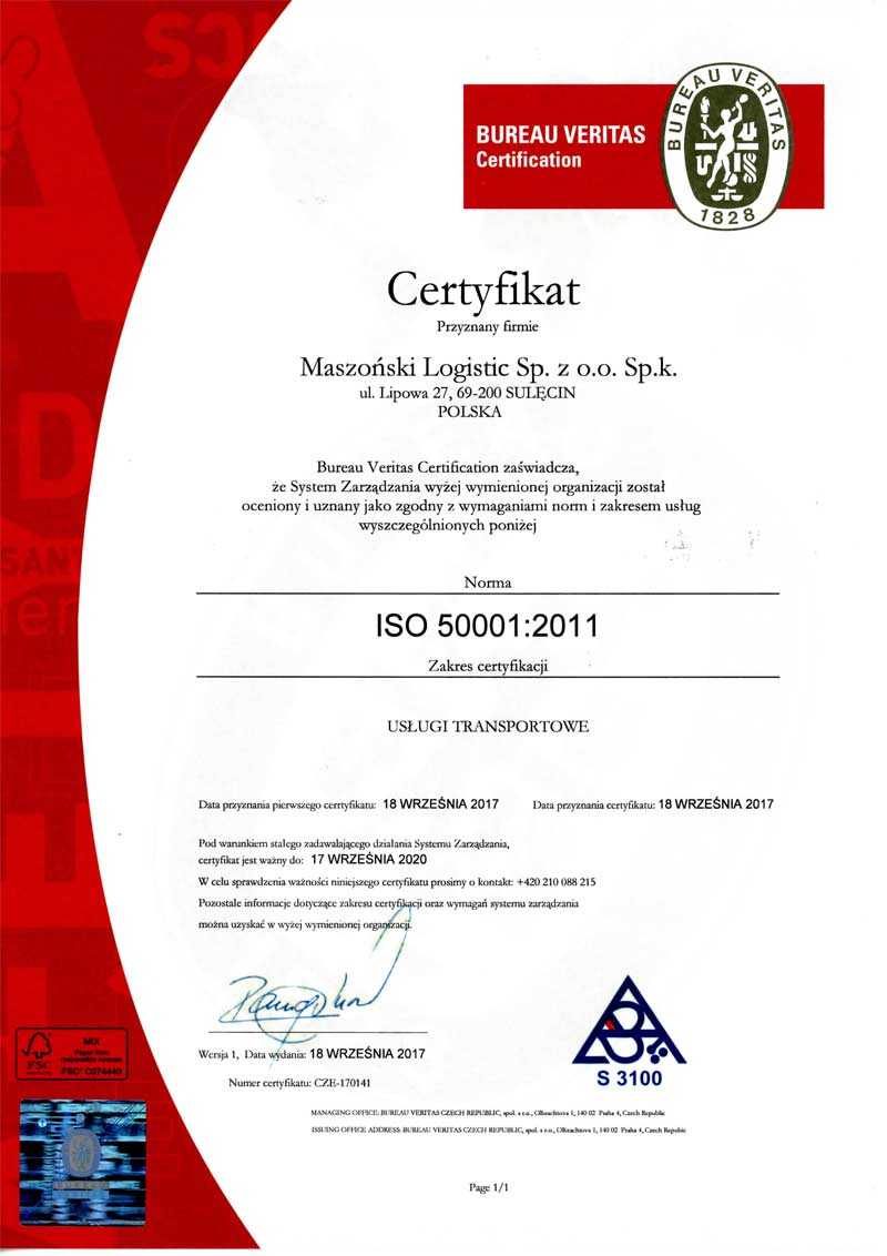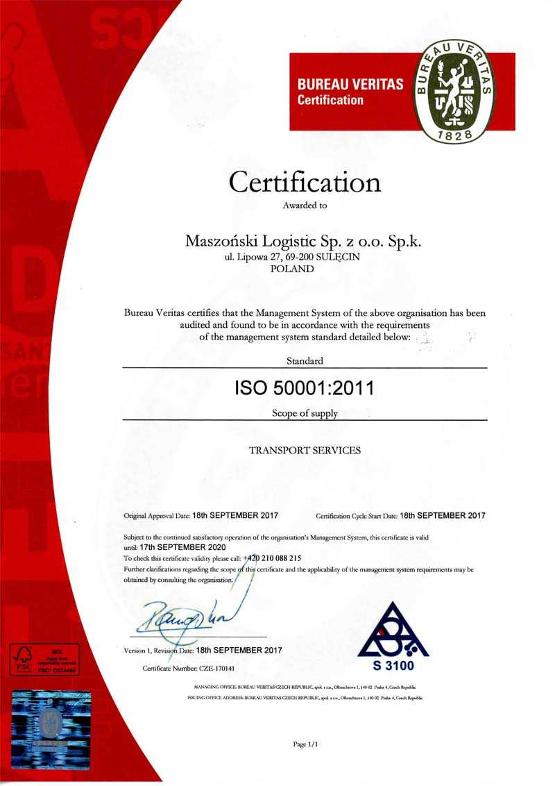 Maszoński Logistic has been certified according to the ISO 50001 international standard. ISO 50001 is one of the world’s best practices for rational and energy-efficient management.